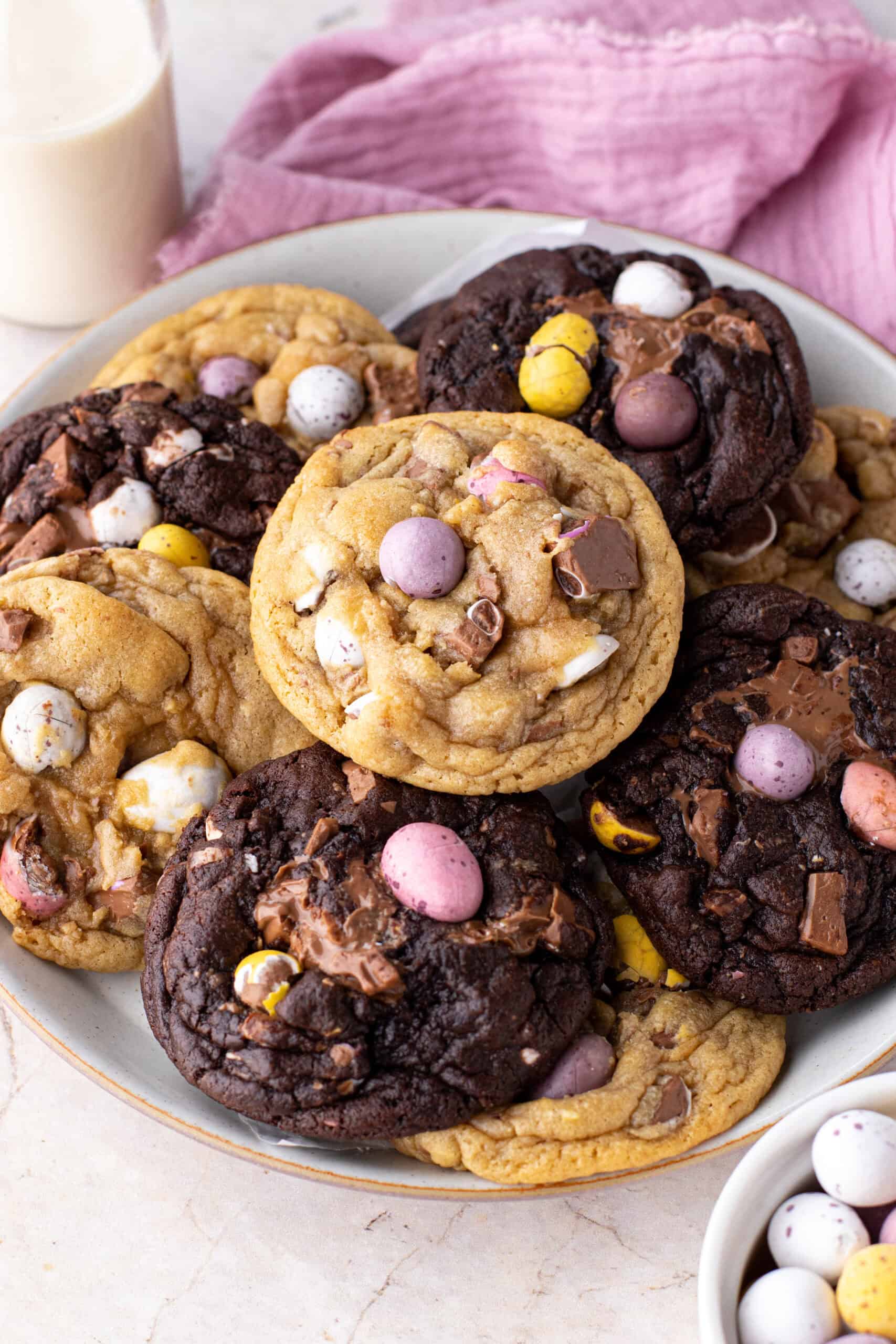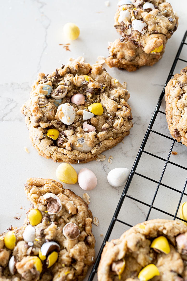 These Cadbury egg cookies use an oatmeal cookie base for extra chew, along with chocolate and crunchy candy eggs. They’re a great choice when you want a hearty, bakery-style cookie with serious Easter candy energy.