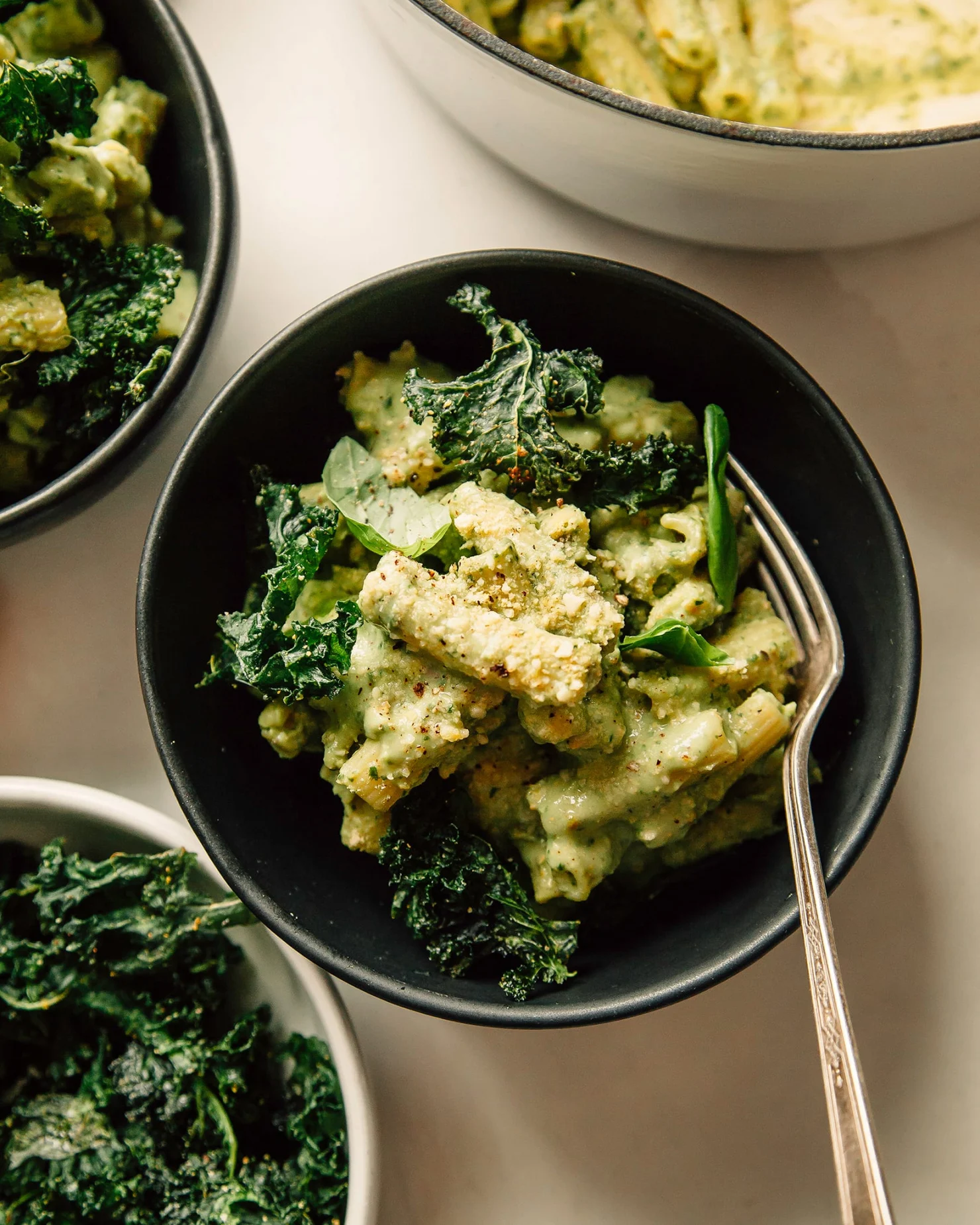 25) Creamy Avocado & Basil Pesto Pasta by The First Mess