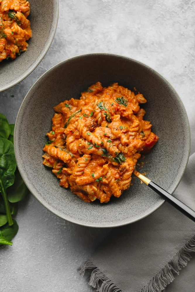 A creamy pasta with sun-dried tomatoes and bold flavors that comes together quickly. It’s comforting, satisfying, and perfect for a cozy vegan dinner with minimal effort.