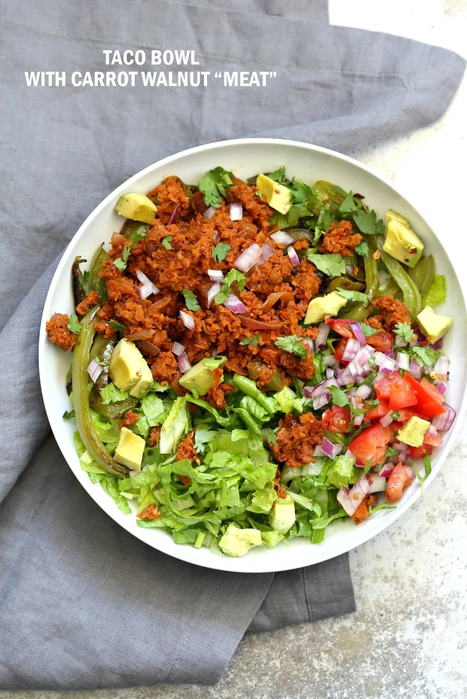 14) Vegan Taco Salad Bowl with Carrot Walnut Taco Meat by Vegan Richa